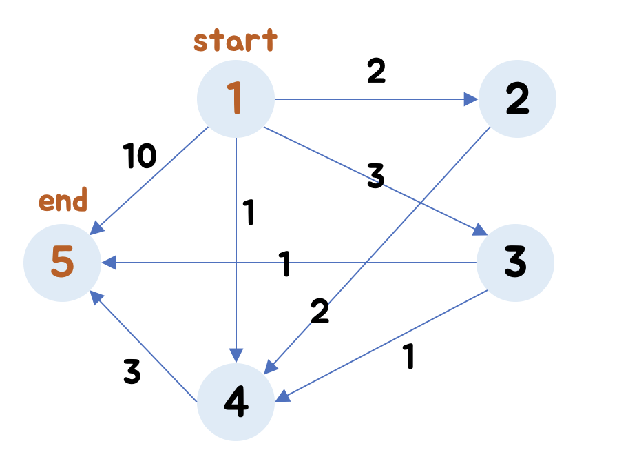 그래프 형식으로 경로가 주어지고, 음수 가중치가 없으며 최단 거리를 구하는 문제이므로 다익스트라를 사용해 문제를 풀어주면 됩니다! 다익스트라 알고리즘에 대한 자세한 내용은 링크를 참고해 주세요!